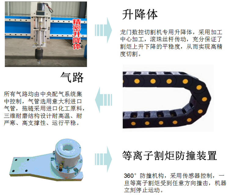 ![]() 一、工作原理: 數控火焰、等離子切割機是一種新型的熱切割設備。它的工作原理是以氧氣+乙炔或丙烷的壓縮氣體為工作氣體, 以高溫高速的火焰(或等離子弧)為熱源,將被切割的金屬局部熔化,并同時用高速氣流將已熔化的金屬吹走,形成狹窄切縫。該設備不僅切割速度快、切縫狹窄、切口平整、熱影響區小、工件變形度低、 操作簡單, 而且具有顯著的節能、節料效果。 A 火焰切割方式:適用于各種鑄鐵、碳鋼等金屬材料切割。 B 等離子切割方式:適用于不銹鋼、鋁、銅、鑄鐵、碳鋼等各種金屬材料切割。 二、有關性能特點: 1、機架龍門結構,系統剛性好,傳動精度高。 2、雙邊驅動,運行平穩。 3、火焰/等離子兩用數控切割系統,操作方便。 4 全自動AcadRcam圖形編程軟件,套料簡單。 5、標準配置火焰、等離子切割功能; 6、可選配多把火焰/等離子割炬,同時切割,提高效率 7、火焰、等離子切割可配置電容自動調高或弧壓自動調高,方便使用操作; 8、橫梁采用鋼板拼焊,熱處理,雙邊驅動,穩定性高; 9、整機結構部分比小龍門穩重很多,美觀,大氣,穩重; 10、橫向導軌采用國產或進口直線導軌,精度高、導向好。縱向導軌采用特質鋼軌,表面經磨削處理,具有很高的機械精度和耐磨性。 11、驅動齒條、齒輪由專業廠家定制,表面滲碳淬火,精度高。橫向、縱向傳動采用德國NEUGART高精度、大轉矩、低背隙、免維護行星齒輪減速機。 12、多配置切割用途,通過配置不同的切割工具,不同的割炬系統能夠滿足各類火焰、噴粉、等離子等加工用途; 13、氣路系統分為氣體控制盤和氣路分配系統,專業廠家生產。配有自動點火裝置、回火防止器,安全穩定; 14、橫向可加寬,可同時放置多張鋼板同時切割,效率高; 15、縱向采用精磨重型軌道鋼,整體結構穩重,縱向導軌可任意加長; 16、橫梁及縱向導軌均采用龍門刨精加工,有效保證切割精度; 17、均采用淬火處理,有效的防止結構變形; 18、搭載大功率等離子切割,滿足不同金屬材料切割; 19、根據用戶需要,增加其它特殊功能; 三、系統優勢: 1、處理器:采用工業級ARM7 處理芯片; 2、顯示:10.4 英寸彩屏液晶顯示,入\輸出:系統提供13 路光電隔離輸入8 路光電隔離輸出; 3、該系統高可靠設計,具有抗等離子干擾,防雷擊,浪涌的能力; 4、實用的火焰/等離子切割工藝,等離子加工時,自動完成拐角速度控制, 和調高器控制; 5、具有割縫補償功能,并檢測程序中補償是否合理, 作出相應報告,供用戶選擇; 6、點恢復,自動斷電恢復功能,斷點自動記憶; 7、任意選段和選穿孔點加工功能; 8、具有適用于厚板的外延穿孔功能, 和適合薄板的搭橋功能; 9、回退,選段,斷點恢復中, 可任選穿孔位置等功能,極大方便用戶的操控; 10、時可以轉移切割; 11、采用了特殊的小線段處理功能,行走流暢, 可廣泛的應用于金屬下料及廣告、鐵藝等; 12、24 種圖形(擴充和自定義)的零件庫,包含了常用的基本加工零件; 13、各種套料軟件完全兼容等; 14、英文操作界面轉換,動態圖形顯示,1~8倍的圖形放大,動點自動跟蹤,采用U 盤讀取程序。 蘇州卡斯倍諾數控科技有限公司堅持以客戶為中心,為客戶提供完善的安裝、調試、培訓、維修等售前和售后服務。 1.售前服務 簽訂合同前,公司為客戶提供相關數控切割技術專業指導及技術咨詢及設備選型等服務。 2. 安裝調試 需方收到貨物后即通知供方派員安裝調試。供方承諾在5個工作日內完成設備的安裝、調試工作。安裝調試后,按照雙方簽訂的技術協議相關標準進行驗收,并且按甲方提供的圖紙試割2~3件制品,制品的切割質量作為切割機最終驗收通過的依據。驗收合格后,雙方簽署驗收報告。調試其間需方應在金屬材料加工及操作工、工具、油料輔料、起重設備和吊具等方面予以無償配合。 3.技術培訓 公司提供免費技術培訓,安裝調試完畢后,在買方對操作人員進行不少于3天的技術培訓,直至操作人員達到正常使用該設備為止。 4.售后服務 4.1 質保期一年內,非人為因素的設備故障,供方提供全免費質保。 4.2 在質保期內,因供方設備自身質量問題導致機器故障時,供方在接到需方通知后,3小時內作出應答,必要時48小時內趕到用戶現場,免費予以排除故障、修復或更換零部件。 4.3 在質保期滿后,出現設備故障時,供方同樣在接到需方通知后,3小時內作出應答,必要時趕到需方現場,及時處理解決,保證提供終身服務,但由需方承擔相應差旅費和配件成本費,實報實銷。 |